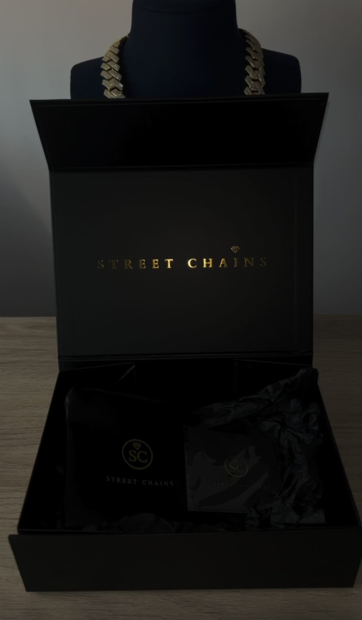 Presentación premium: Packaging Street Chains con tarjeta de garantía y certificado de autenticidad