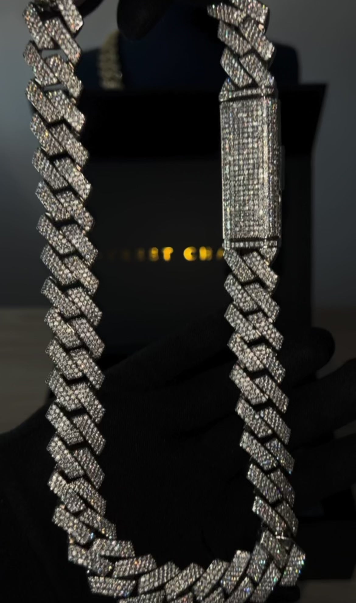 Con su grosor de 20 mm, esta cadena es una declaración de estilo y poder, ideal para quienes buscan una pieza llamativa y exclusiva.