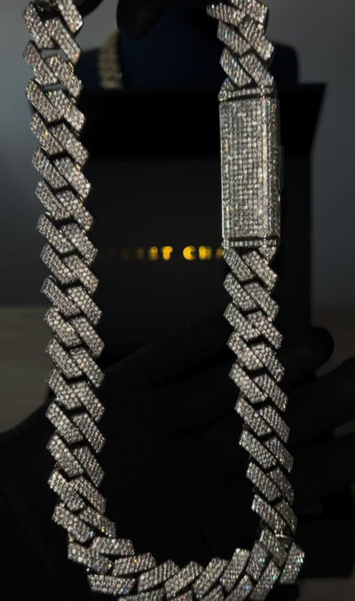 Cada pieza de Street Chains está hecha a mano por expertos joyeros, engastando cada piedra con precisión para lograr un brillo inigualable.