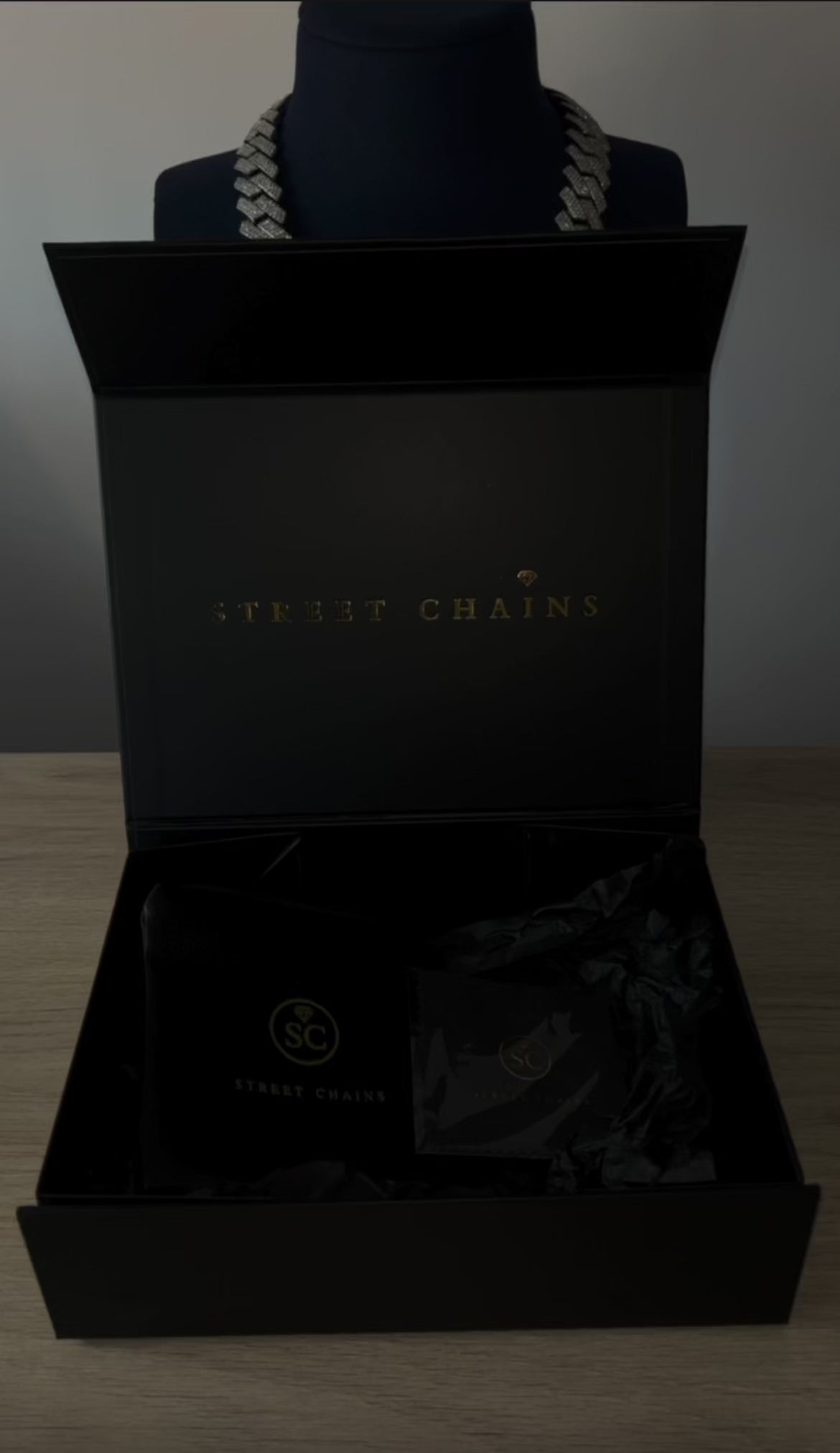 Presentación premium: Packaging Street Chains con tarjeta de garantía y certificado de autenticidad