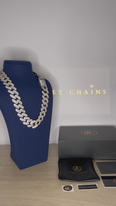Cada pieza de Street Chains está hecha a mano por expertos joyeros, engastando cada piedra con precisión para lograr un brillo inigualable.