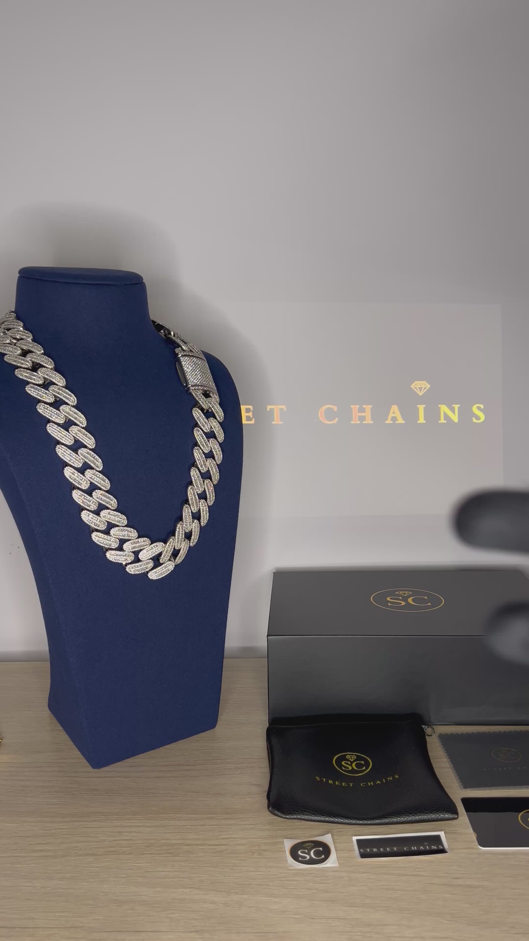 Presentación premium: Packaging Street Chains con tarjeta de garantía y certificado de autenticidad